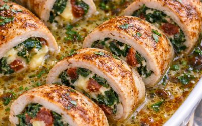 Roladki drobiowe ze szpinakiem, suszonymi pomidorami i serem