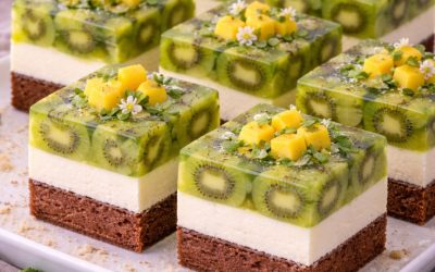 Ciasto z kiwi, waniliową masą serową i galaretką