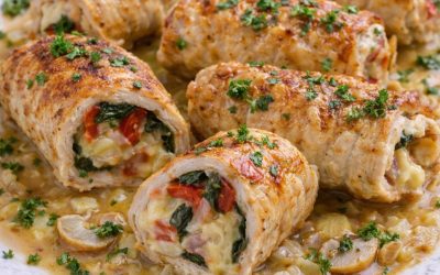 Roladki z kurczaka ze szpinakiem, suszonymi pomidorami i serem