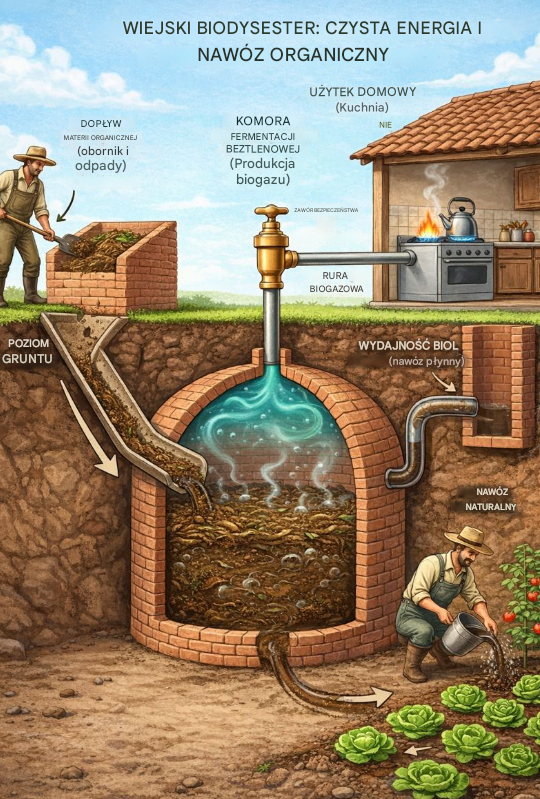 Rozwiązaniem, które umożliwia takie działanie, jest biodigestor — proste, ale niezwykle skuteczne urządzenie wykorzystujące naturalne procesy rozkładu. Dzięki niemu można jednocześnie produkować energię do gotowania oraz płynny nawóz wzmacniający glebę.