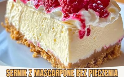 Sernik z mascarpone bez pieczenia z bitą śmietaną i malinami