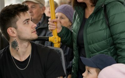 Autobus był zatłoczony. Większość pasażerów była starsza, niektórzy trzymali torby ze sznurkiem, inni rozmawiali o cenach i pogodzie. Młody mężczyzna…