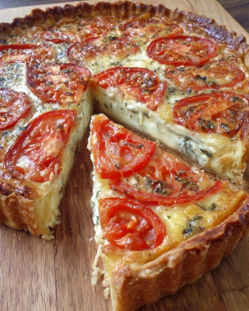 Ta tarta pomidorowa z mozzarellą i ziołami to proste i pyszne danie, idealne na lekki posiłek lub piknik. Połączenie soczystych pomidorów i rozpływającej się mozzarelli z aromatycznymi ziołami zachwyci Twoje podniebienie.