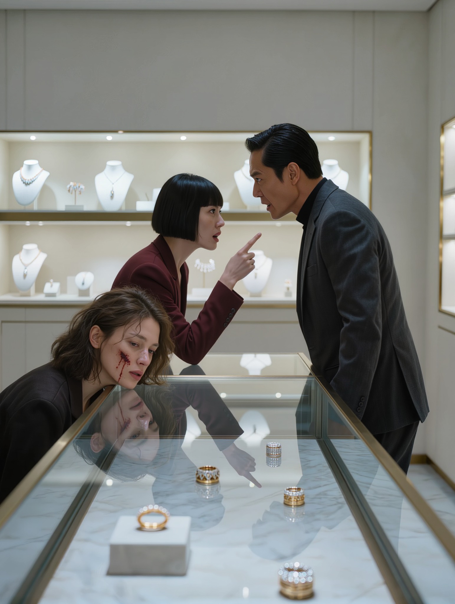 Moja siostra uderzyła mnie w twarz w butiku z biżuterią: „Zwróć mi ją – moje zaręczyny są najważniejsze”. Poczułem smak krwi. Potem elegancko ubrany mężczyzna chwycił ją za nadgarstek: „Dotknij jeszcze raz mojej żony”. Zaczęła drżeć… i wyszeptała jego imię.
