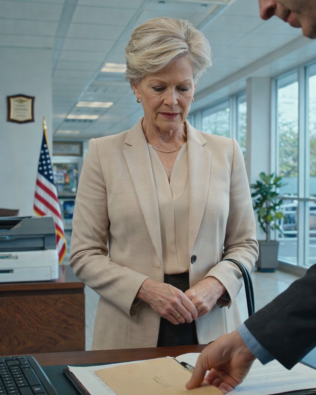 „Tak. Właśnie w tym problem” – kontynuowała Romy, a jej maska uprzejmości lekko opadła. „Nie młodniejesz, a utrzymanie domu tej wielkości jest drogie. Wade i ja uważamy, że najlepiej byłoby, gdybyś przeniosła się w bardziej odpowiednie miejsce”.