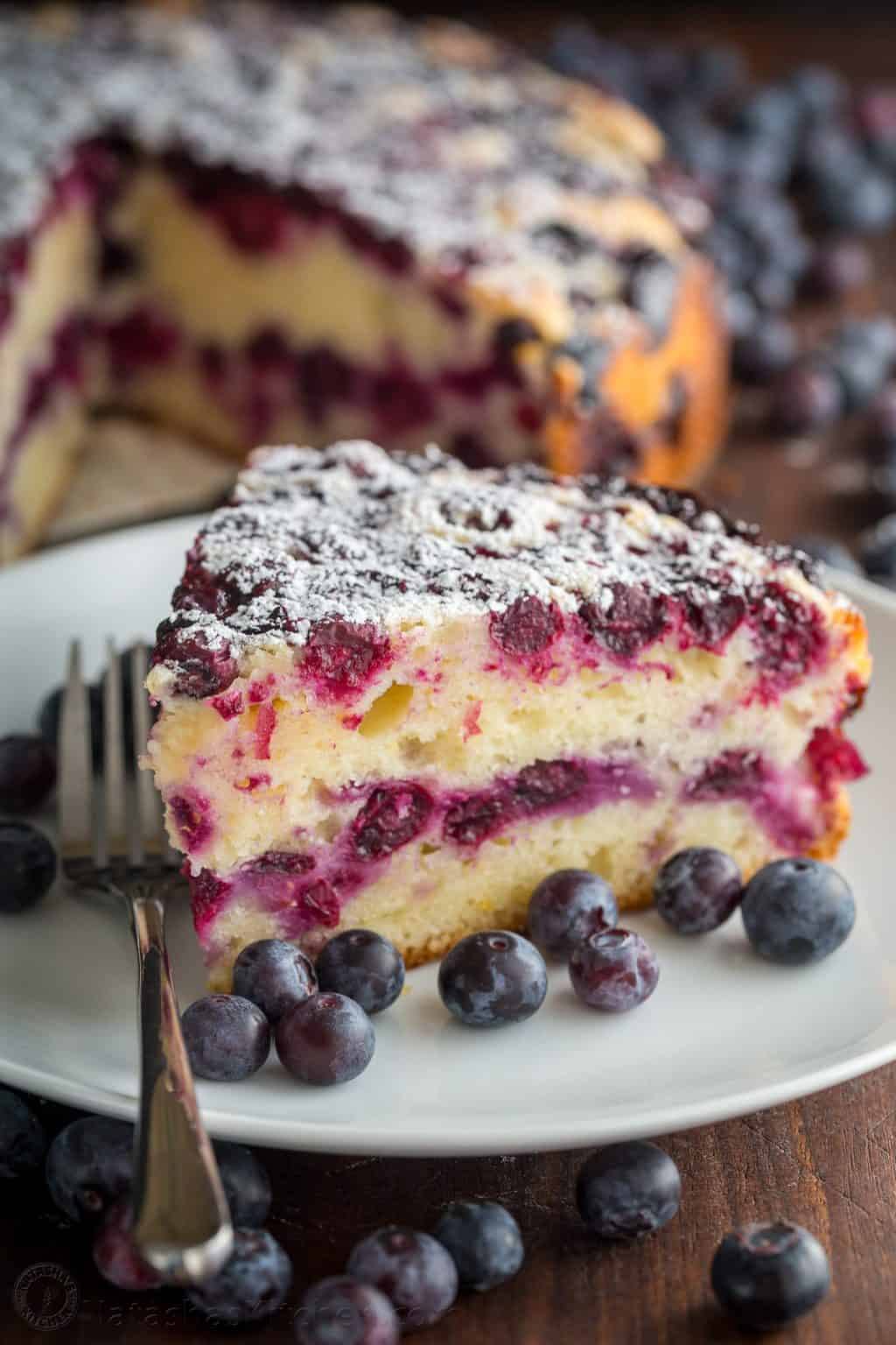 Jagody stają się soczyste i kandyzowane po upieczeniu w deserach i ciastach. Uwielbiamy desery jagodowe, od kruszonek po tarty, a to łatwe w przygotowaniu ciasto jagodowe jest po prostu pyszne.
