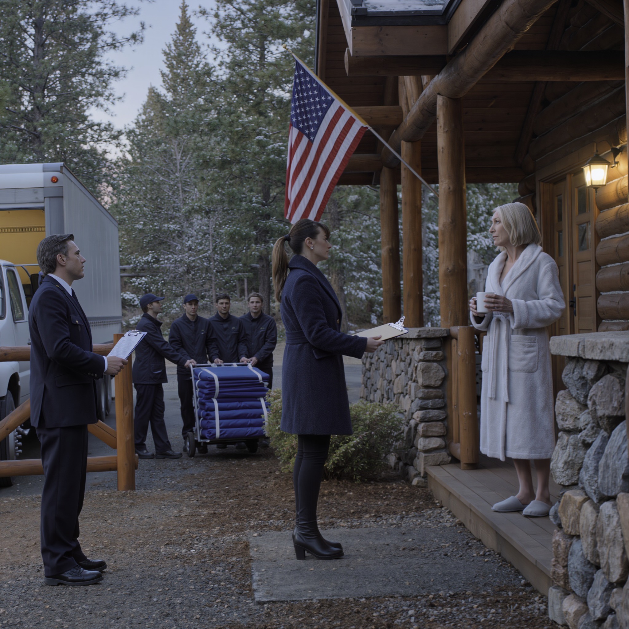 Relaksowałem się w mojej górskiej chacie, gdy o 5 rano włączył się alarm. Strażnik zawołał nerwowo: „Twoja córka przyjechała z przeprowadzką – chce, żebyś się wyprowadził. Mówi, że jest właścicielką”. Wziąłem powolny łyk herbaty i uśmiechnąłem się. „Wpuść ją. Zaraz się dowie”.