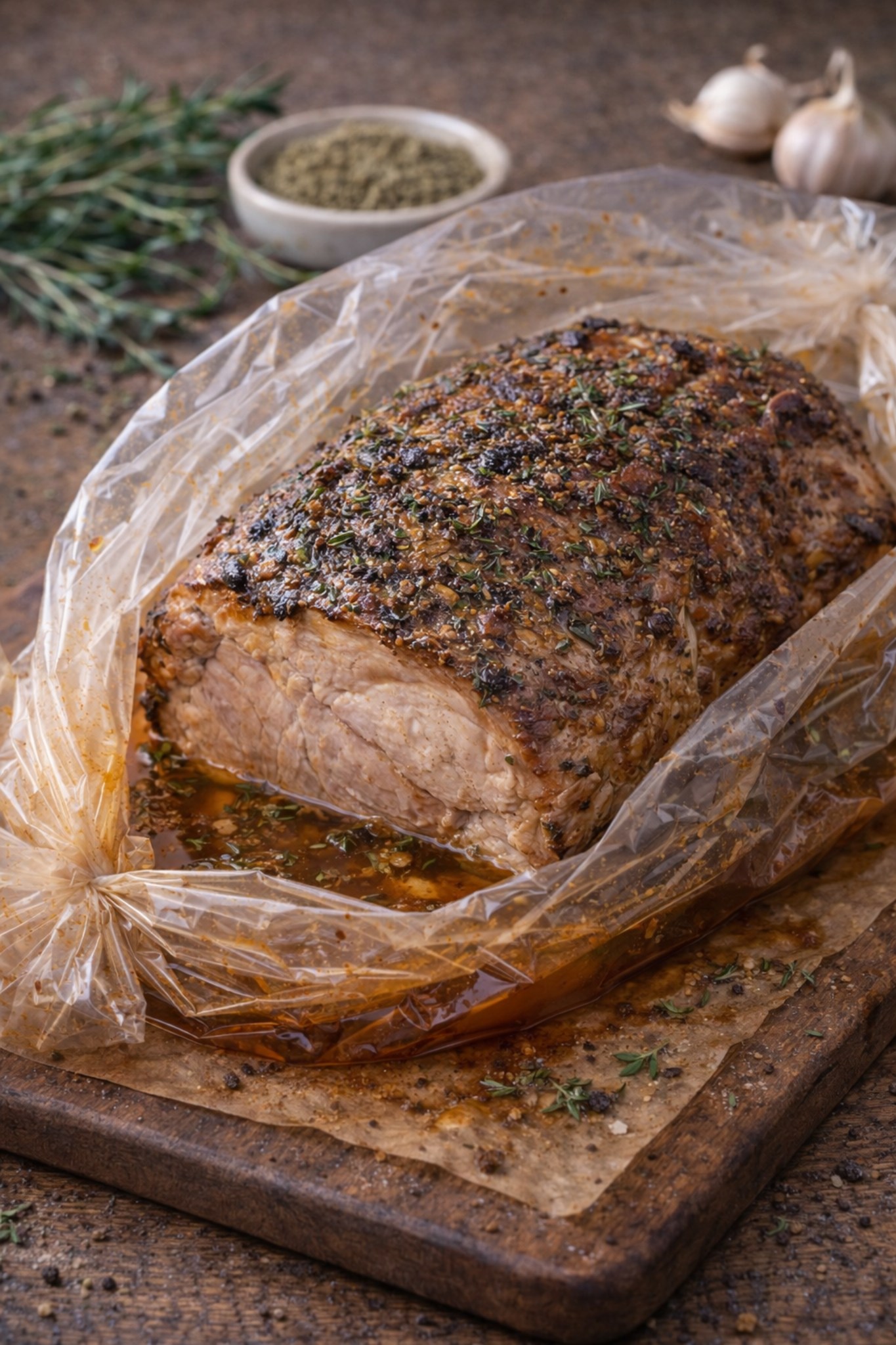 Szynka pieczona w rękawie z czosnkiem i ziołami
