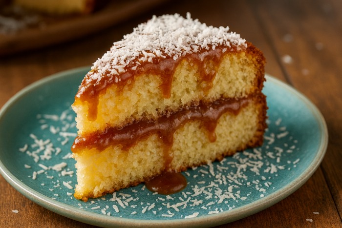 Składniki potrzebne do przygotowania wilgotnego ciasta kokosowego z dulce de leche