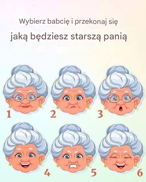 Starzenie się to podróż pełna mądrości, doświadczenia i, powiedzmy sobie szczerze, dziwactw. Czy nam się to podoba, czy nie, wszyscy zmieniamy się z wiekiem, rozwijając unikalne cechy, które definiują nasze złote lata. Ten zabawny obrazek zachęca do wyboru babci i odkrycia, jaką starszą kobietą mogłabyś się stać. Która z nich najlepiej odzwierciedla Twoją przyszłość? Przekonajmy się!