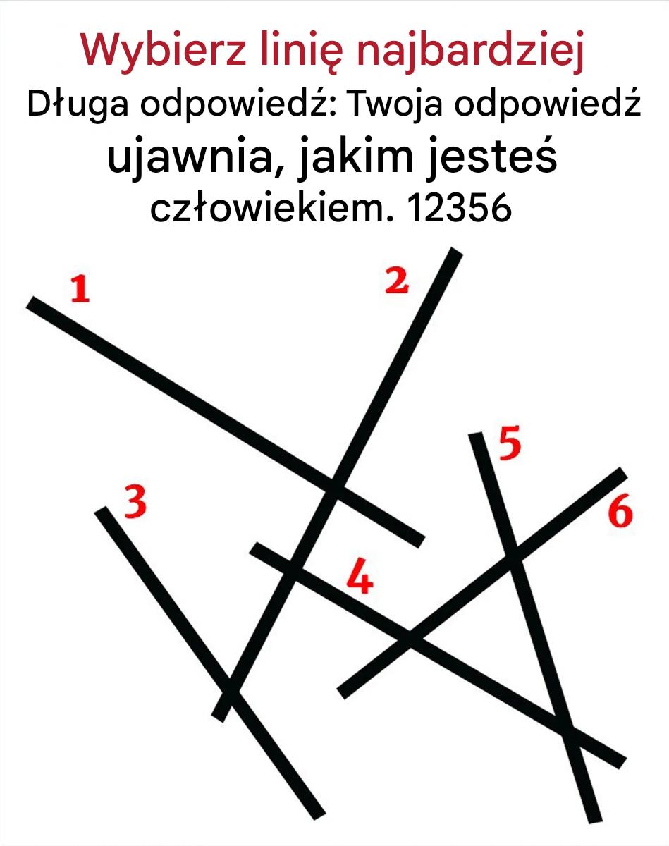 Na pierwszy rzut oka to niewinna gra: narysuj czarne linie ponumerowane od 1 do 6 obok siebie. Która z nich wydaje się najdłuższa? Wskaż, która wydaje się najdłuższa. A jednak… za tym pozornie niewinnym wyborem kryje się fascynujący test Twojej intuicji i podejścia do życia. Gotowy odkryć, co Twoja intuicja o Tobie mówi?