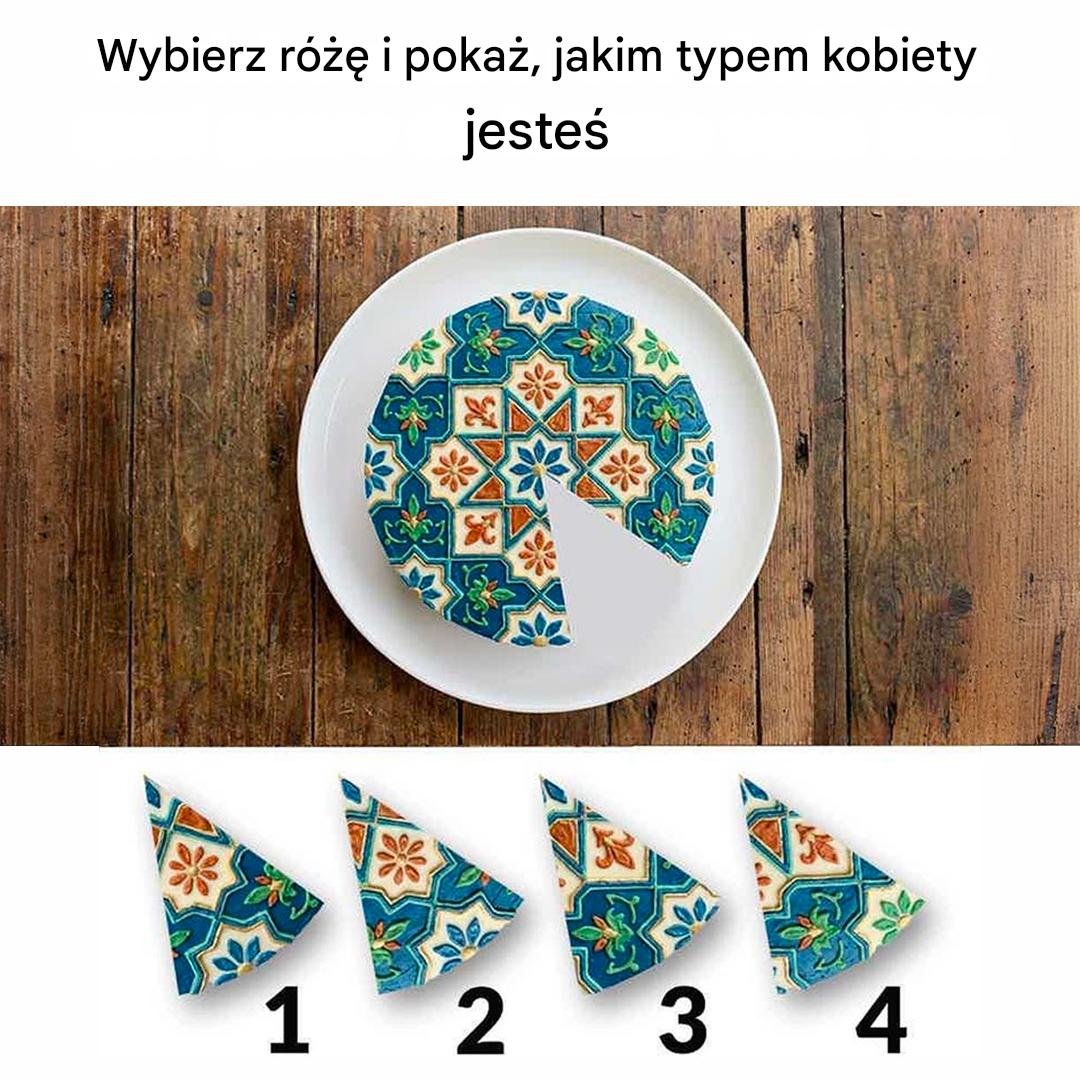 Wyobraź sobie pięknie udekorowany tort położony przed Tobą. Wszystko wydaje się idealne… poza jednym szczegółem: brakuje kawałka! Tuż pod spodem, kilka kawałków mogłoby wypełnić pustą przestrzeń. Który byś instynktownie wybrał? Za tą małą wizualną łamigłówką kryje się zabawny test osobowości, który może ujawnić niektóre cechy Twojej postaci. Gotowy do gry? Przyjrzyj się uważnie, wybierz kawałek… i odkryj, co podpowiada Ci intuicja.